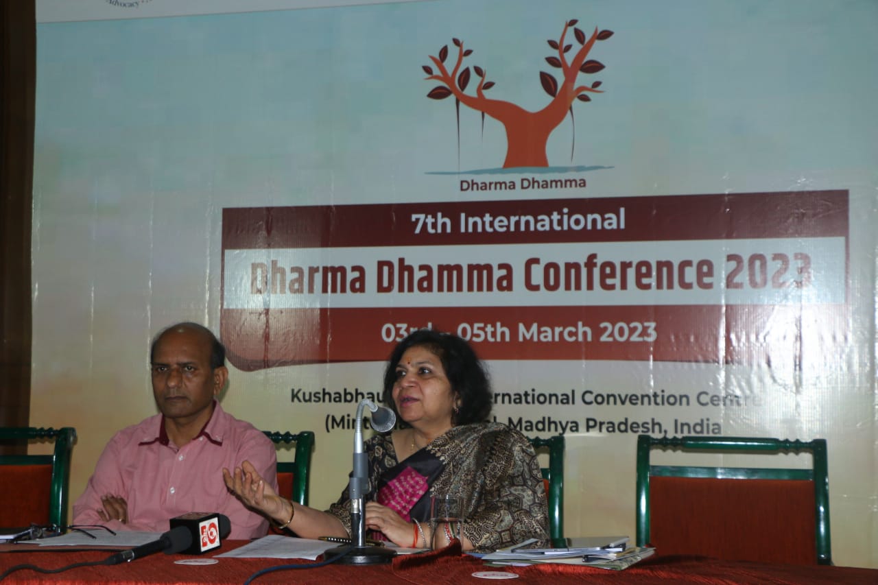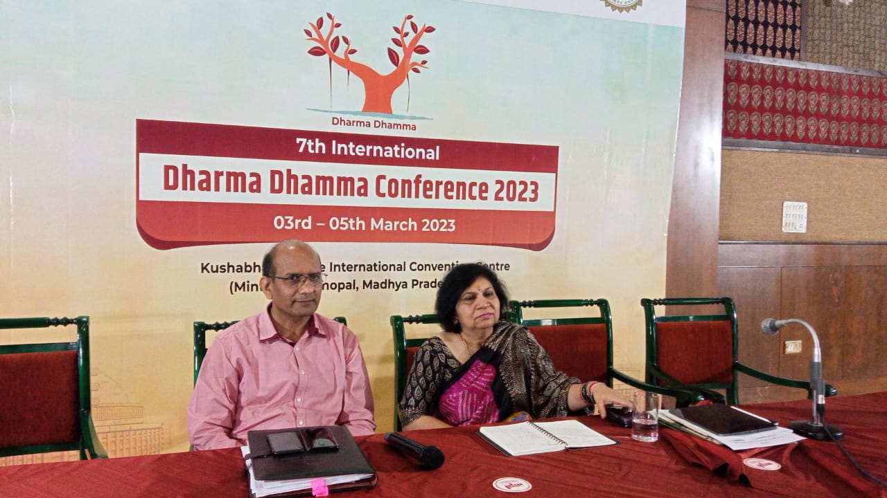 सांची बौद्ध-भारतीय ज्ञान अध्ययन विश्वविद्यालय और इंडिया फाउंडेशन द्वारा संयुक्त रूप से आयोजित 7वां अंतरराष्ट्रीय धर्म-धम्म सम्मेलन भोपाल में आयोजित किया जा रहा है। नए युग में मानववाद का सिद्धांत (Eastern Humanism in New Era) पर केंद्रित यह सम्मलेन दिनांक 03 से 05 मार्च 2023 तक कुशाभाऊ ठाकरे अंतरराष्ट्रीय सभागार, भोपाल में होगा। इस सम्मेलन का उद्घाटन माननीय राष्ट्रपति श्रीमति द्रौपदी मुर्मू द्वारा दिनांक 03 मार्च 2023 को दोपहर 12 बजे किया जाएगा। उद्गाटन समारोह में माननीय राज्यपाल श्री मंगूभाई पटेल , मुख्यमंत्री श्री शिवराज सिंह चौहान, संस्कृति मंत्री सुश्री उषा ठाकुर एवं सांची बौद्ध-भारतीय ज्ञान अध्ययन विश्वविद्यालय की कुलपति डॉ नीरजा गुप्ता शामिल होंगे।
