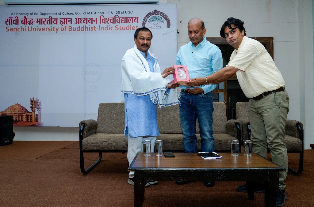 साँची बौद्ध-भारतीय ज्ञान अध्ययन विश्वविद्यालय व रिसर्च फॉर रिसर्जेन्स के संयुक्त तत्वावधान में आज विश्वविद्यालय परिसर में एक विशिष्ट व्याख्यान का आयोजन किया गया। "भारतीय ज्ञान परंपरा में शोध दृष्टि" विषय पर आयोजित इस व्याख्यान में नॉलेज रिसोर्स सेंटर के निदेशक डॉ. भुजंग रामराव बोबड़े ने