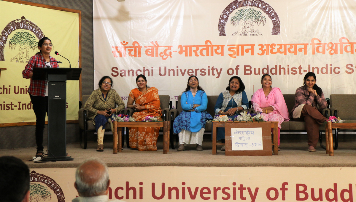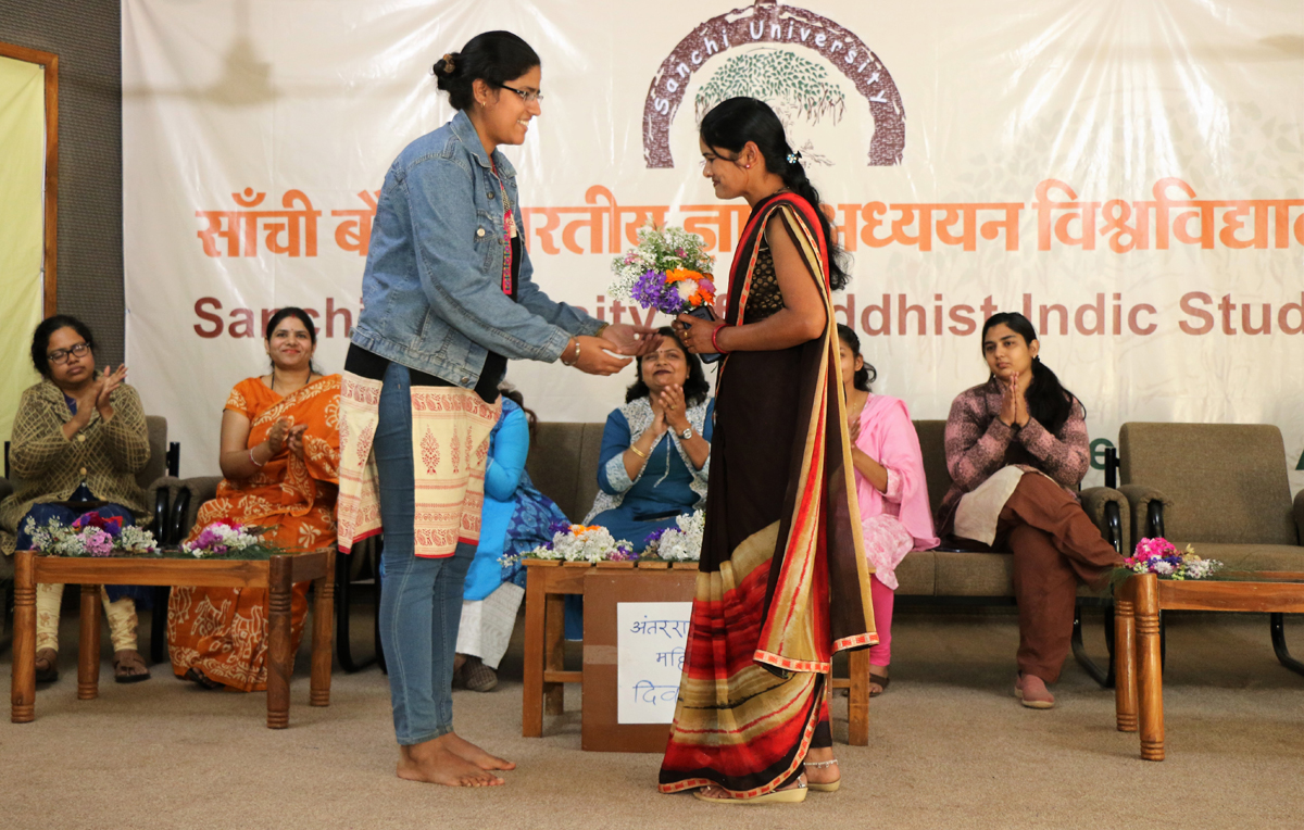 सांची बौद्ध-भारतीय ज्ञान अध्ययन विश्वविद्यालय में अंतरराष्ट्रीय महिला दिवस पर छात्रों और शिक्षकों द्वारा महिला कर्मचारियों का सम्मान एवं विचार गोष्ठी का आयोजन किया गया। विश्वविद्यालय की कुलपति श्रीमती रेनू तिवारी ने सभी महिला कर्मचारियों और छात्राओं को अंतरराष्ट्रीय महिला दिवस की बधाई दी। कार्यक्रम में डीन डॉ नवीन कुमार मेहता ने मातृशक्ति की महत्ता और व्यक्तित्व विकास में मां की भूमिका पर बात रखी।