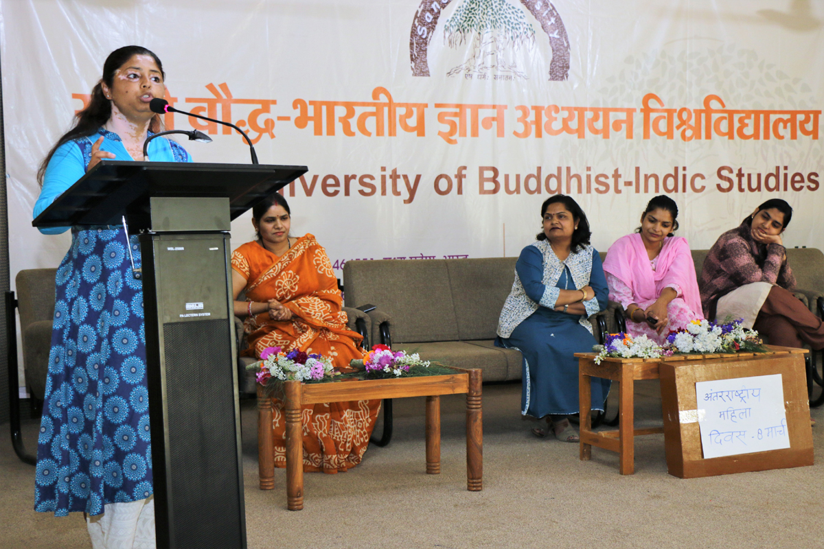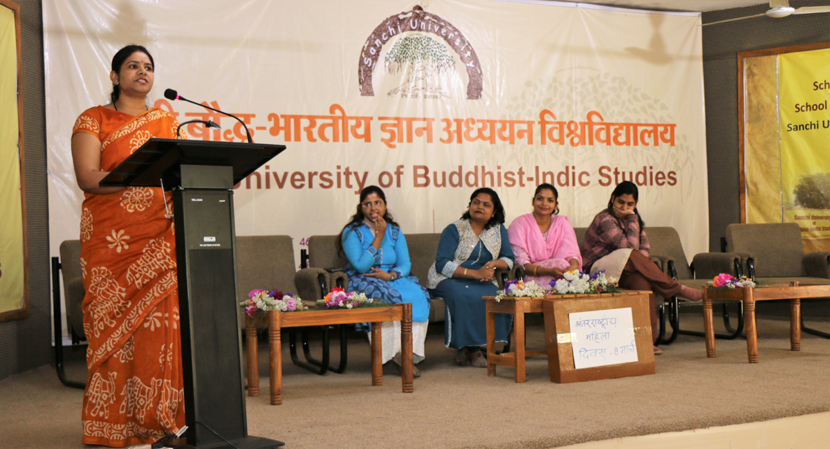 सांची बौद्ध-भारतीय ज्ञान अध्ययन विश्वविद्यालय में अंतरराष्ट्रीय महिला दिवस पर छात्रों और शिक्षकों द्वारा महिला कर्मचारियों का सम्मान एवं विचार गोष्ठी का आयोजन किया गया। विश्वविद्यालय की कुलपति श्रीमती रेनू तिवारी ने सभी महिला कर्मचारियों और छात्राओं को अंतरराष्ट्रीय महिला दिवस की बधाई दी। कार्यक्रम में डीन डॉ नवीन कुमार मेहता ने मातृशक्ति की महत्ता और व्यक्तित्व विकास में मां की भूमिका पर बात रखी।